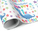 A special 1st birthday gift wrap! This bright fun first birthday wrapping paper features a blue dinosaur, some pretty stars and colorful text. A cute design for someone who will be one year old.