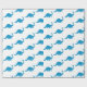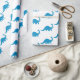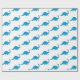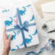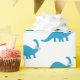 A cute wrapping paper featuring a blue dinosaur with a bow tie.