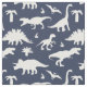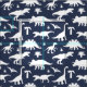 Navy blue fabric patterned with cute white jurassic dinosaurs