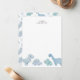 Cute kid's stationary note card featuring hand drawn illustration of blue pastel dinosaurs.