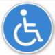 Round stickers featuring the classic disabled symbol, a man in a wheelchair on a blue background.