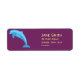 Blue dolphin cute cartoon personalized address labels with an art design of a very cute girly blue dolphin image cartoon against a dark purple customizable color background. The text is fully customizable to include your own personal details.