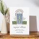 Charming and modern moving announcements let friends and family know about your new abode! Design features a sketched light blue door illustration flanked with green bushes, with your custom headline (shown with "my new address") beneath. Personalize with your new address and name in a chic combo of serif and calligraphy lettering.