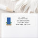 This return address label is decorated with a watercolor of a blue door and pot plants.
