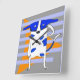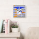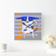 Blue Dot Dog, Orange Triangle Abstract Square Wall Clock