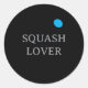 Blue dot squash ball custom sport stickers. Custom round stickers or seals with personalized text optional. Sports logo design for squash lover, fan, player, sports coach, club trainer, friend, colleague, coworker, boss, kids etc. Also handy for teams, clubs, groups, competitions, leagues etc. Eat sleep play repeat!