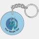 Acrylic keychain with illustration of cute blue dragon girl / fairy-tale design for kids in blue circle , design for kids by Maxi Harmony,