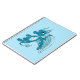 Notebook with illustration of a cute little blue dragon on blue background, cute fantasy / fairy-tale design for kids by Maxi Harmony,