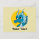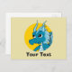 Personalized Postcard with illustration of cute blue dragon girl / fairy-tale design for kids in yellow circle , design for kids by Maxi Harmony,
