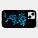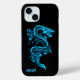 Fantasy iPhone case done in black, with awesome graphics of a turquoise blue colored Chinese style dragon. the turquoise text, at the bottom, is ready to personalize for yourself or as an outstanding gift idea to your favorite fantasy fan.