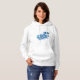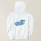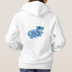 This hoodie has a colorful and detailed dragon on front and back in shades of blue and purple surrounded by blue water splashes. The perfect hoodie to warm you up after a dragon boat race.