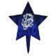 A Dragon applique in chrome like silver style on a blue flaming carbon fiber background print to wear or to share on all festive occasions.