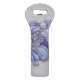 The wine tote is great for all of the social events and gatherings at neighbors in our community. The material is very durable and easy to carry a chilled bottle of wine or a few stacked aluminum cans. Be sure to push the bottle or cans firmly to the bottom so the carrier isn't tippy when set on a table. The blue background is a lovely rich blue with a sharp white logo - the printing looks great! I didn't realize the blue background wouldn't go edge to edge (there is a white "seam area" on each side) but our logo colors are blue and white so it looks like trim.