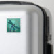 Blue and green hand-painted watercolor dragonfly with golden ring embellishment on a green watercolor background.
