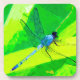 Blue Dragonfly on Green Abstract Impressionism Coaster