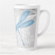 Enjoy your latte or morning coffee with a Blue Dragonfly Personalized Latte Mug. Mug design features a colorful dragonfly, a soft white leafy vine against a light gray grunge damask background with an area to personalize with your name. Additional gift items available with this design as well as a variety of colors.