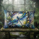 Blue Dragonfly Watercolor Botanical Lumbar Pillow