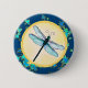 Blue Dragonfly with Leaves Button
