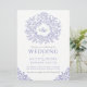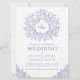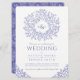 blue drawn leaf monogram art wedding invitation