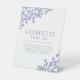 blue and white hand drawn growing leaf botanical art wedding confetti take me sign. Simple leaf design in blue and gray on white. Personalize with your own words, currently reads Confetti Take Me So when the newly weds walk your way you can throw this confetti and shout. Hooray! Ideal to use for guests to take a particular type of confetti so you get the confetti all looking the same or is suitable if your venue has environmental restrictions and only allows leaves or real petals to be used that you have to get approved. Other colors and matching items available. © Original leaf drawing and design by Sarah Trett for www.mylittleedenweddings.com on zazzle.