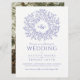 Blue drawn leaf wreath monogram art wedding photo invitation