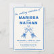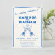 Plain white envelopes are included with paper invitations and will come to fit the invitation size you select. If you don’t need the envelopes, you may choose to not receive them by selecting the dropdown below "Envelopes" and choosing "None." If you’d like to have a design on your envelopes, you can browse all of these available envelopes to find the design that complements your Blue Drawn Together Champgane Wedding Invitation.