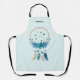 An apron with a pretty watercolor dreamcatcher. Blue, turquoise and cream colors. Decorated with feathers, beads and flowers.