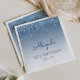 These chic, girly eighteenth (or any year) birthday party paper napkins feature a sparkly blue faux glitter drip border and blue ombre background. Personalize them with the guest of honor's name in blue handwriting script, with her birthday and date below in sans serif font.