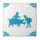 Blue Dutch Kids & Pig Delft Tile