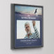 Blue memorial peel and stick wall tile featuring a photo of your loved one printed against a background of a backlit eagle soaring over a mountain landscape at sunrise with clouds adorning a pale blue sky. Add your loved one's name and years living. Photo memorial peel and stick wall tile to which you can a photo of your loved one who's passed away along with his name and years living. In loving memory is written in white above your husband's photo and beneath it, his name and date of birth and date of passing. Honor your loved one who's passed away with this photo peel and stick wall tile personalized with a photo of your husband, father, or grandfather with an eagle flying across a cloud-streaked sky at sunrise.