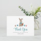 A blue Easter Bunny thank you card with a garden or spring-theme. A perfect way to thank your guests for coming to your party.