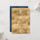 Blue Ecru Gold Monogram Modern Wedding Invitation