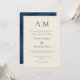 Blue Ecru Monogram Modern Wedding Invitation