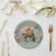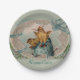 Paper Easter Plates showing Baby Chicks on blue eggs surrounded by a flowered egg shell with ribbons and wishing you Happy Easter!