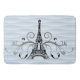 Add a touch of Paris to your bath with this vibrant and unique bath mat featuring the Eiffel Tower embellished with elegant flourishes against a blue wavy background. Matching bath decor available with this design as well.