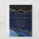 Blue Elegance Gold Glitter Agate Wedding Invitation