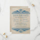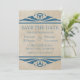 Stylish and chic Elegant Deco Save the Date Announcement featuring a pair of art deco swirl flourish borders in dark blue and a vintage textured look background in a soft beige. This save the date invite has rustic charm while maintaining a lovely sophisticated flair. Absolutely perfect for an art deco 1920's vintage themed wedding. Easy to customize, simply add your wedding details in the text fields provided. Click "Customize It" to find more personalization options such as changing fonts or text colors.