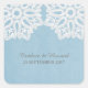 Simple and sophisticated Elegant Lace Wedding Stickers featuring a white lace doily motif on a light blue faux vintage paper background. These classic and stylish stickers are perfect for a rustic wedding. Easy to customize with your wedding details. Click "Customize It" to find more personalization options.