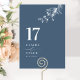 Blue Elegant, Minimal Botanical Wedding Table Number