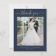 Blue Elegant Script 2 Photo Wedding Gold Script Thank You Card