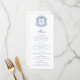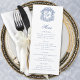 Blue Elegant Script Monogram Crest Wedding Menu