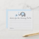 Our blue and gray elephant themed baby shower Advice for the Mommy To Be Cards are a sweet activity to have at a baby shower. If you'd like, you can easily personalize the cards title to be "Advice for the New Parents" or to use the the mom's name before adding the cards to your cart.