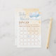 Make gift opening extra fun with this charming baby shower bingo card. Inspired by dreamy nursery skies, the design features a sleepy watercolor elephant resting on a fluffy cloud with soft stars all around. It adds a playful and adorable touch to your baby boy shower while keeping guests entertained.