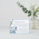 Add a touch of whimsy to your baby shower table with this adorable elephant display card, featuring a watercolor baby elephant with soft blue florals and leafy greenery. Ideal for guiding guests to the gift table, book drop, or game station, this safari-themed sign brings both charm and function to your setup. Perfect for a baby boy celebration, it's an easy way to keep things organized while maintaining a cohesive jungle-inspired theme.