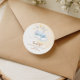 This adorable baby shower sticker was inspired by peaceful nursery skies and bedtime dreams. A sweet watercolor elephant resting on a fluffy cloud under tiny golden stars creates a warm and magical scene. Perfect for sealing favors, envelopes, or gift bags while thanking guests for celebrating your baby boy.