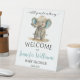 Watercolor blue elephant peanut baby shower welcome sign, pedestal sign.