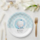 An adorable baby elephant with blue ears and a baseball cap on a blue and white diamond pattern is featured on these baby shower paper plates. Also available in pink and green. MATCHING items in our store.