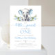 Blue Elephant Little Peanut Boy 1st Birthday Invitation