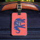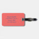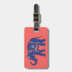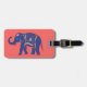 Stylish coral colored luggage tag with graphics of a blue elephant with colorful flower accents. The back of the tag has blue custom text ready to personalize.