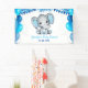 Super cute large baby shower/birthday banner with Watercolor Baby Boy Elephant and Blue Balloons and glitter.